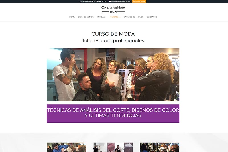 Además de presentar las marcas que ofrece y dejar en claro que se trata de una distribuidora exclusiva, el cliente dicta cursos sobre el uso de productos y nuevos estilos de corte para profesionales del sector. Por lo que esta sección debía de tener su propio apartado.
