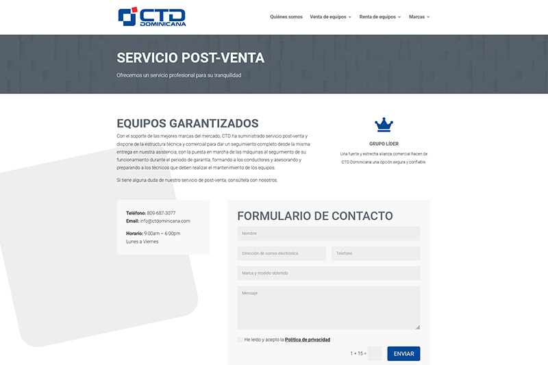 Rediseñamos la página web de CTD Dominicana. El objetivo de su web es dejar claro desde un principio, la actividad y servicios que CTD Domincana ofrece y cuáles son sus ventajas.