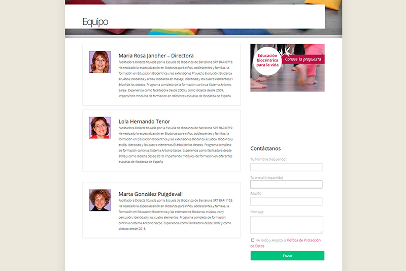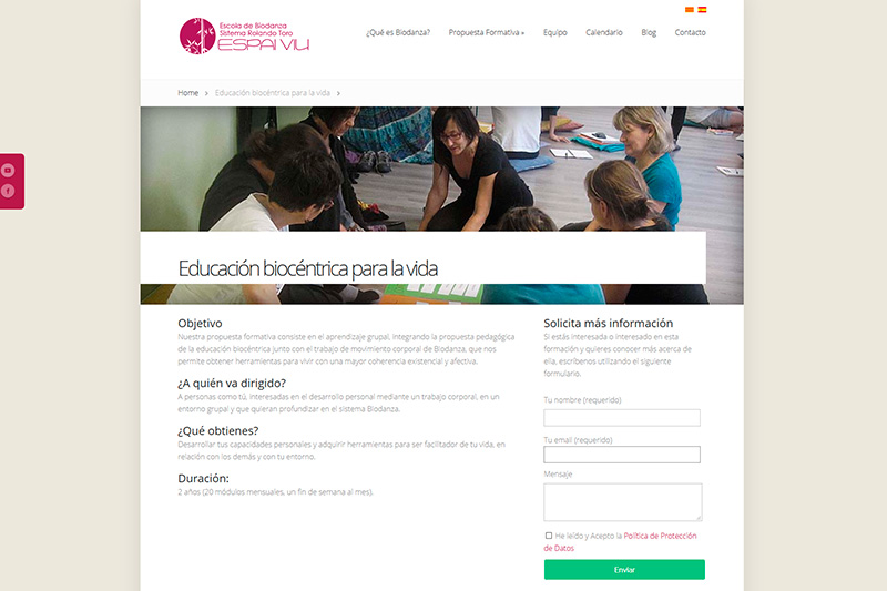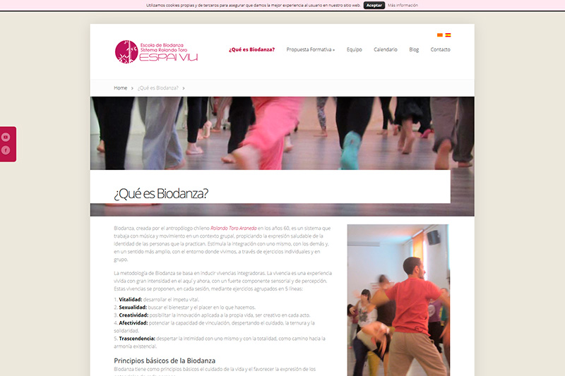 La Escuela de Biodanza sistema rolando Toro nos solicitó un proyecto con Diseño web que plasmara el concepto de su propuesta y cuyo contenido tuviera un rápido acceso desde dispositivos móviles.