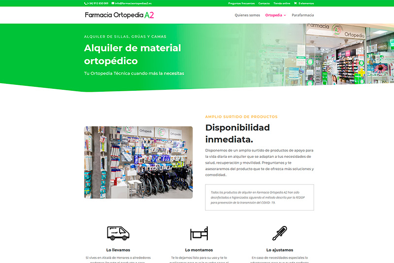 La página web de Farmacia y Ortopedia A2 precisaba de una actualización, tanto a nivel de diseño como en su necesidad de vender algunos de los productos de parafarmacia y ortopedia en Alcalá de Henares mediante su propia Tienda online.