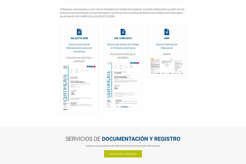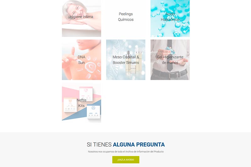 Woo es la plataforma perfecta para gestionar tiendas online en WordPress. Permite al dueño de un sitio web, poder gestionar su catálogo de productos y mantenerlo actualizado. De esta forma Neftis, presenta a sus clientes todas las opciones de formatos de las que dispone al momento de crear un producto en el laboratorio. Describiéndolos e informando las innovaciones que lanza al mercado.