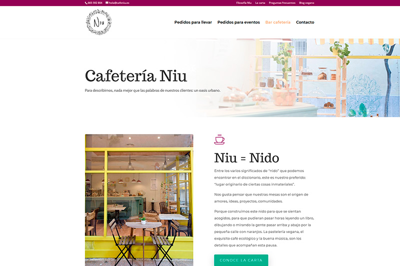 Niu quería tener el completo control de sus contenidos y poder acceder fácilmente a su página web para poder cambiar textos o fotgrafías. Nos contrató al saber que llevamos más de 12 años como especialistas en Diseño web y WordPress.